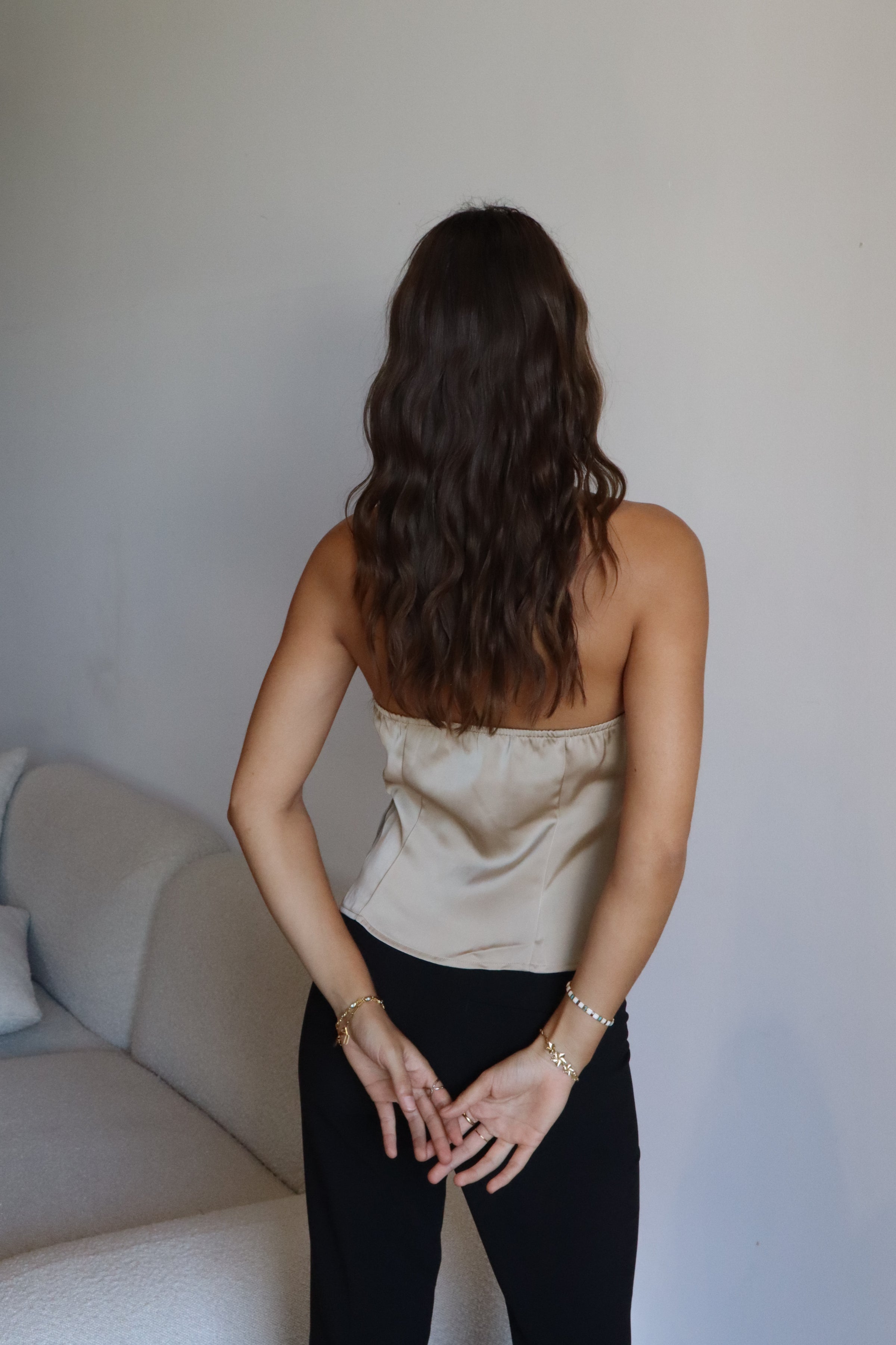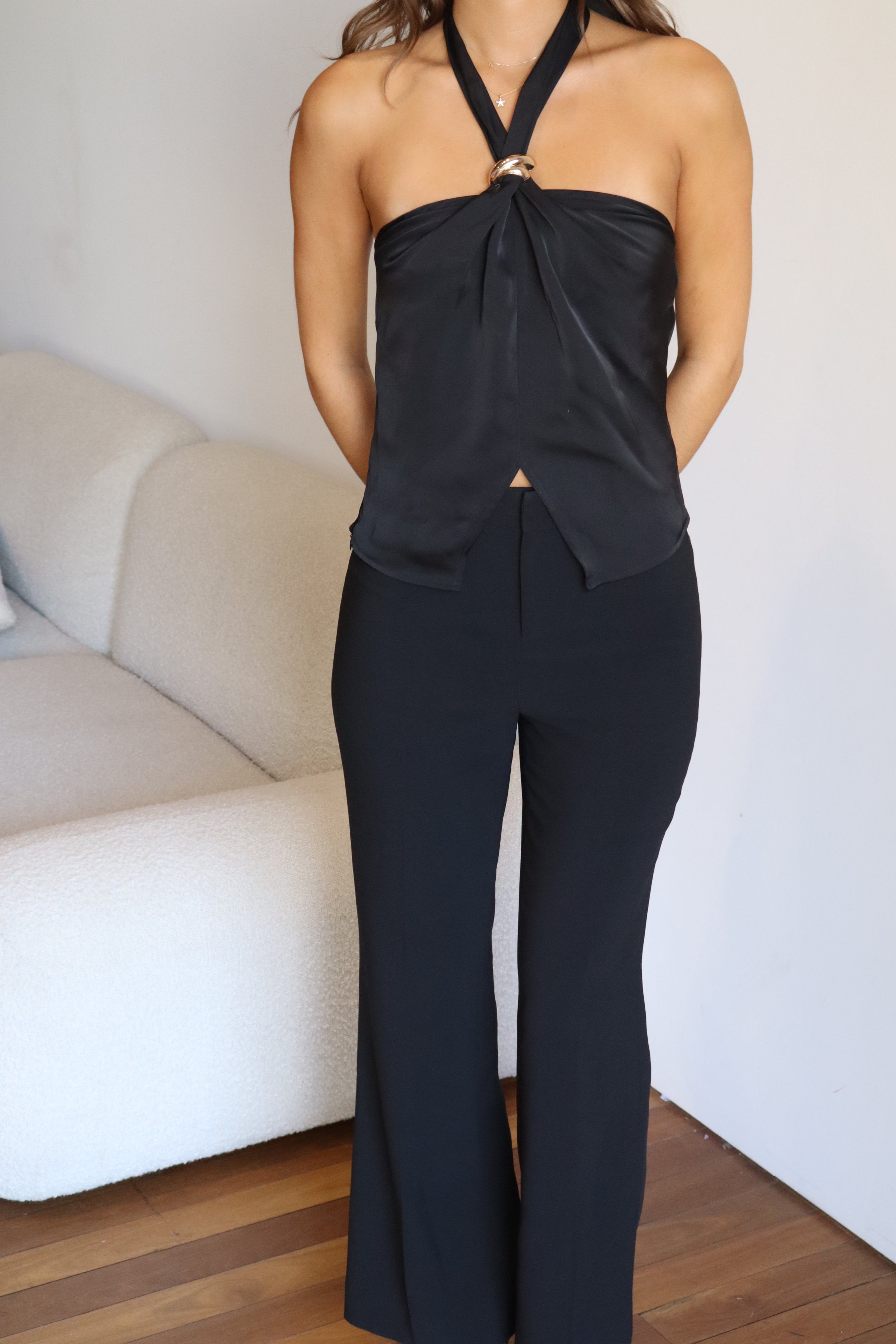 Perfect for both day and night, the Lumière Ring Halter pairs seamlessly with tailored trousers or elevated basics for a polished yet understated look.